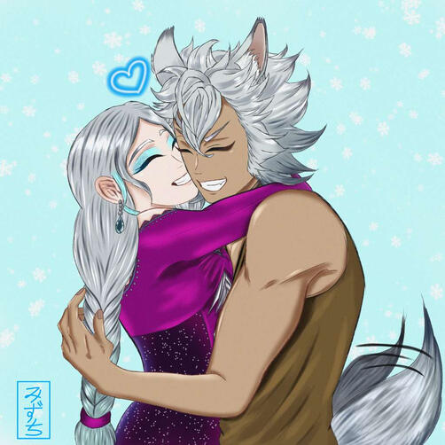Unlike Mika, Krysta does have powers, and a Unique Magic called レト•イト•ゴー! (Let it go!) Which causes a huge ice blast within a 5-10 mile radius.I ship Krysta with Jack because of that concept of "What if the Snow Queen actually found love on her own but in the form of a wolf beast man who isn't bothered by the cold?..."